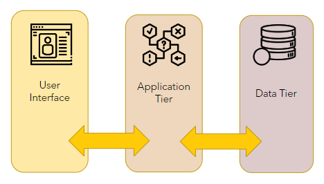 A 3-tier application architecture is a modular client-server architecture that consists of a presentation tier, an application tier and a data tier. The data tier stores information, the application tier handles logic and the presentation tier is a graphical user interface (GUI) that communicates with the other two tiers. The three tiers are logical, not physical, and may or may not run on the same physical server.